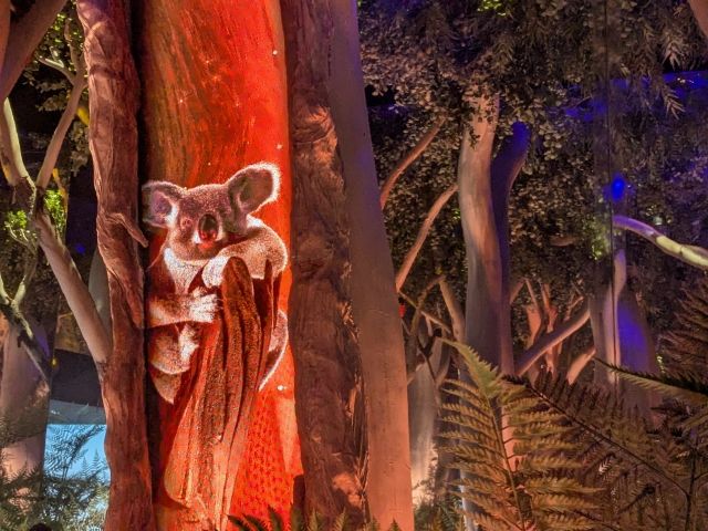 木々を眺めていると、コアラを発見!木の幹に埋め込まれたディスプレイに動物が登場する仕掛け。全部で6種類隠れているらしいです。