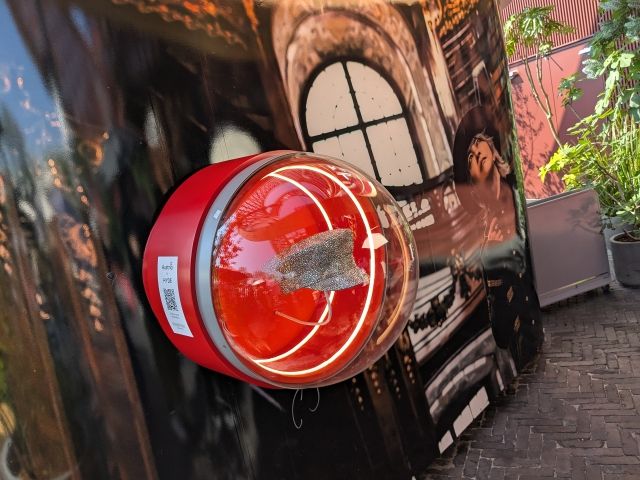 展示があるのはパビリオンの内部ではなく外側ですが、入口手前であるため、通りがかりにチラ見するのは不可。恐らく列に並ばないと見れない気がします。