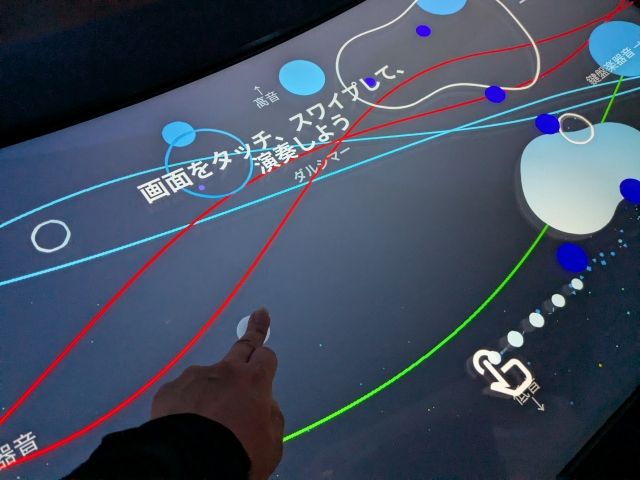 設置されたディスプレイでSDGsの17の目標をひとつ選び、そのあとは画面の様々なところをタッチしたりスワイプして音を奏でることができます。操作はシンプルなので、楽器が弾けなくても何も問題ありません