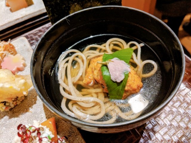 汁物代わりに添えられたお蕎麦も嬉しい。少し冷え込む夜だったので、温かいものがあるとホッとします。