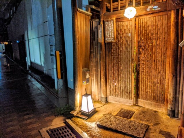 築80年の町家を利用した雰囲気のある店舗。手織り寿司の雰囲気からもっと派手なお店を想像していたのですが、裏路地にある門構えはとても慎ましやか。
