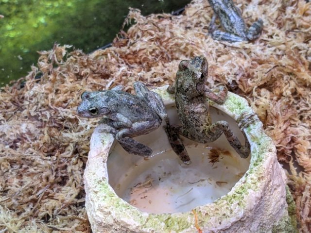 こちらはカジカガエル。見た目は茶色く、アマガエルやモリアオガエルに比べると非常に地味。しかし、鳴き声はとっても美しいのです。高く澄んだ音色で、聴く人によって「フィフィフィフィ」「ルルルルル」「ヒョロヒョロ」など、様々な文字で表現されています。