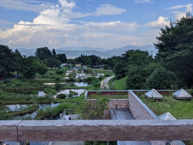 バーベキュー場やマレットゴルフ場、ドッグランなどが集まるレジャー施設、国営アルプスあづみの公園。今回訪問したあづみの学校は、その園内にあります。