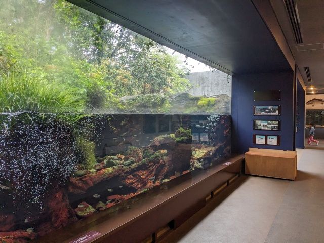 単調になりがちな淡水魚水族館ですが、展示のバリエーションが豊かでまったく飽きることなく楽しめました!アカメ、オオウナギ、レッドテールキャットなど大きいサカナもおり、ちいさな水族館ですがとっても見ごたえありました。