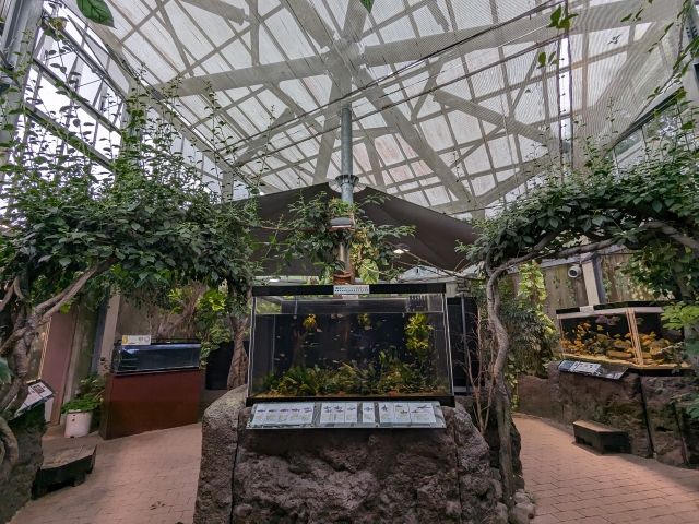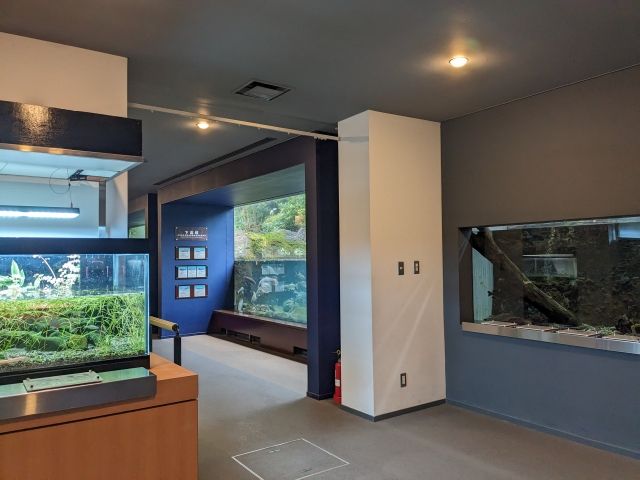 館内の奥は温室。南米やアフリカといった世界の熱帯淡水魚を多数展示しています。