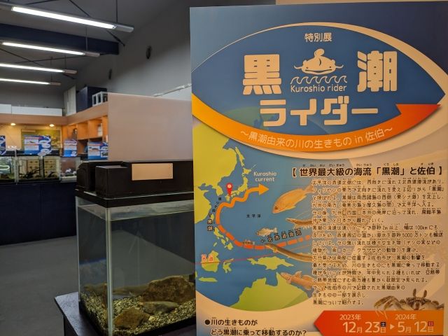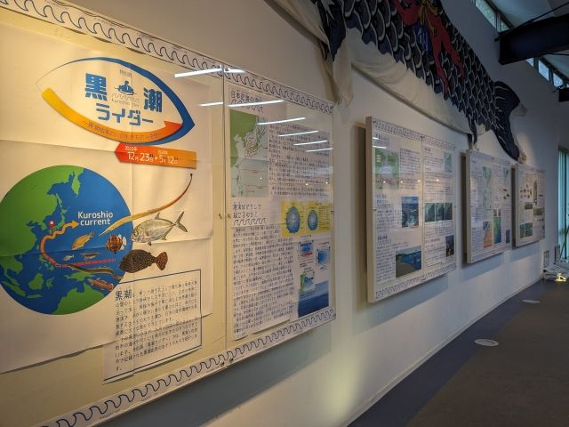 佐伯市の川で記録された黒潮由来の生きものを紹介する特別展。解説パネルはびっしりと熱量たっぷり。どちらかというと、大人向けな内容です。