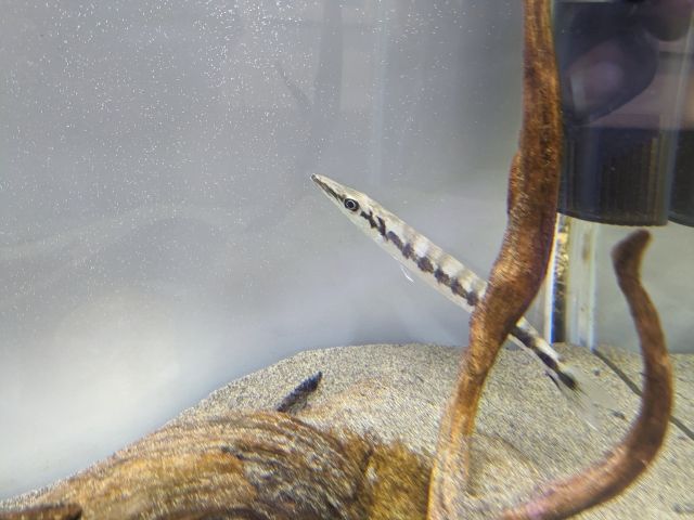 こちらの細い魚は、なんとオニカマス。番匠川河口にて一度だけ見つかった記録があるそう