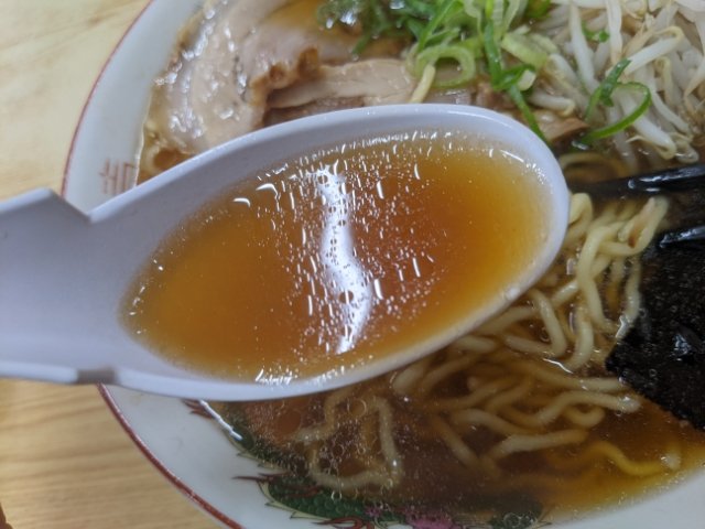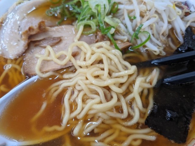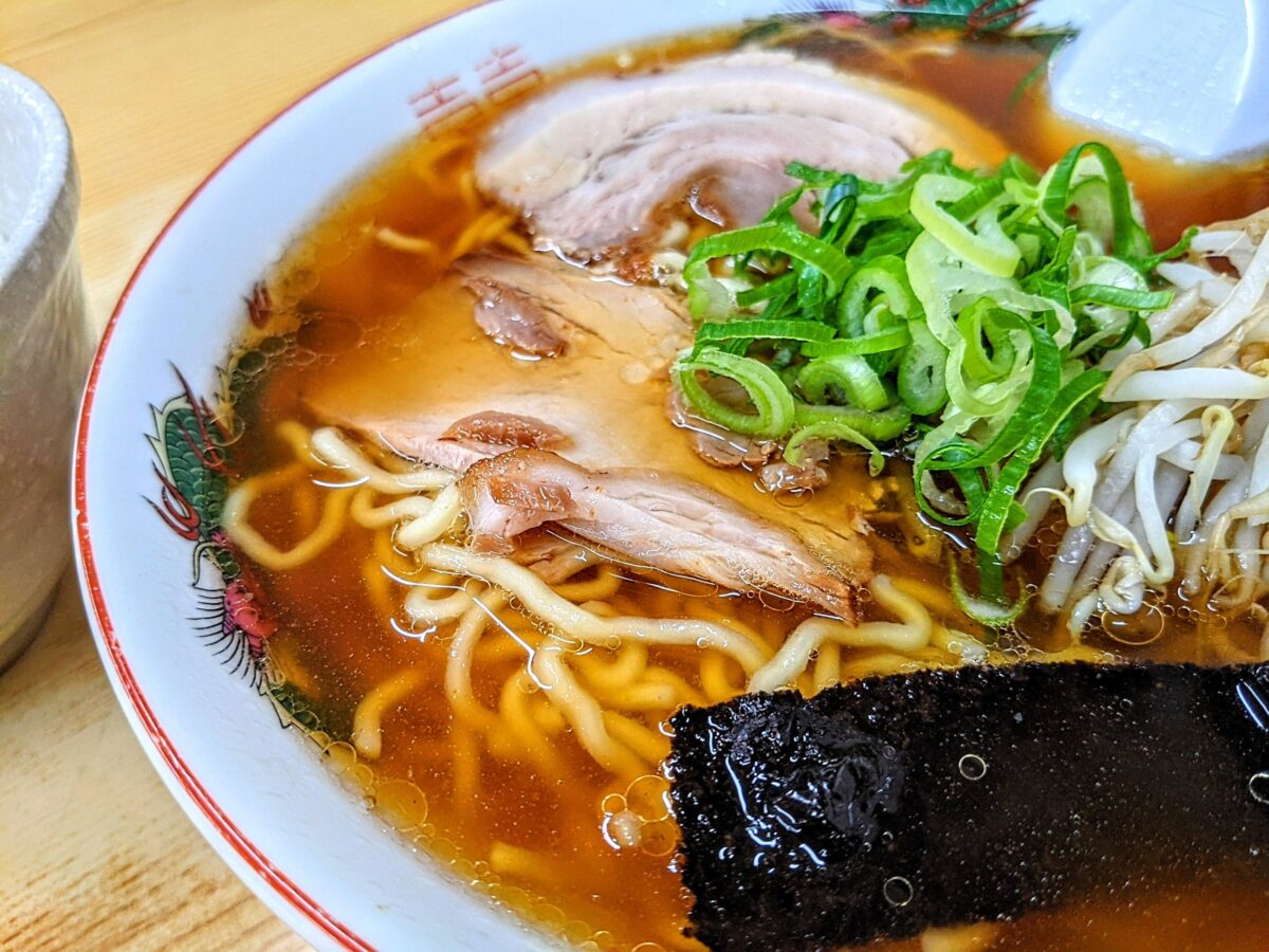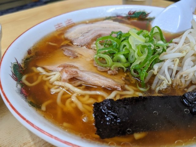注文してすぐにチャーシュー、ネギ、もやしがトッピングされた普通の醤油ラーメンがやってきました。