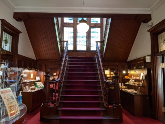 戦後はアメリカ軍に接収され、その後は商工会議所、家庭裁判所を経たのち、愛媛県立郷土芸術館としてオープン。愛媛県立美術館分館と名称変更した後、国の重要文化財に指定されました。一般開放されており、予約不要で誰でも見学することができます。