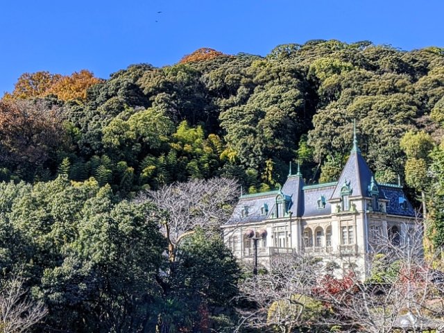 松山城が立つ城山の麓に建つ洋館・萬翠荘。松山藩主の主家の子孫である久松定謨(ひさまつさだこと)伯爵が1922年に建築した別荘です。