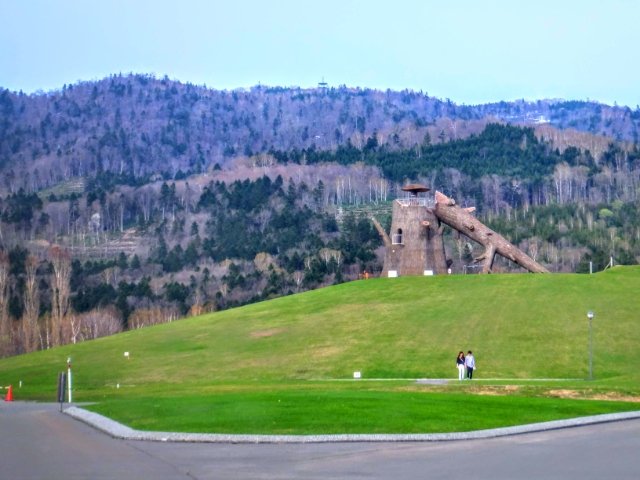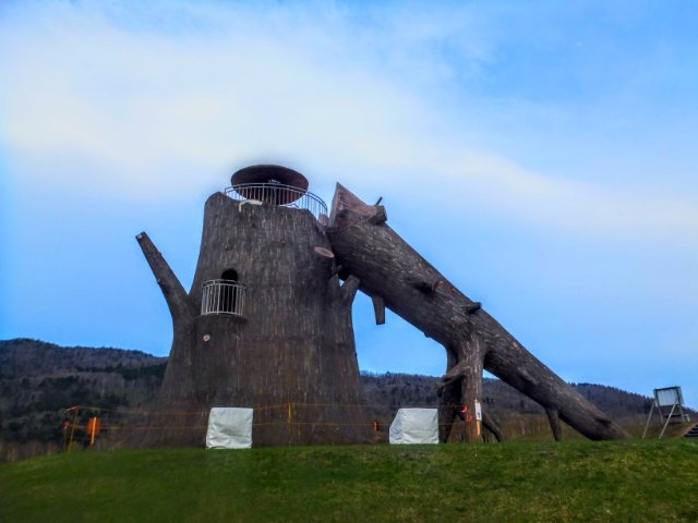 芝生で遊ぶファミリーやパークゴルフ場を横目に歩いていると、小高い丘の上に、折れた大木を見つけました!