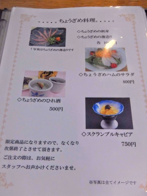 また、こちらのレストランではチョウザメを食べることができます。刺身、チョウザメハムのサラダなど、他では見かけないレアメニューが並ぶ。