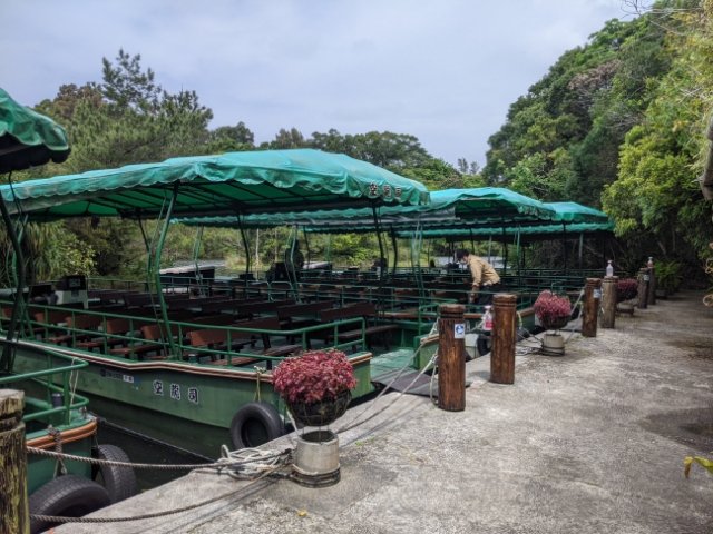 入園料に乗船料が含まれていますので、これに乗らない選択肢はありません。出発は毎時00/30分、所要時間は約25分となっていますので、お急ぎの方は時間配分にご注意。