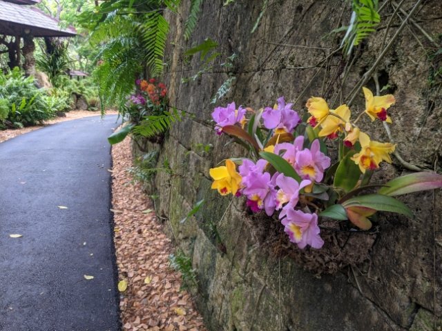 3月に訪問したところ、デンドロビウムなどのランがたくさん咲いていました。ビオスの丘は、もともとラン農家だったらしく、今でもランを多く栽培しているそうです。写真映えする演出です。