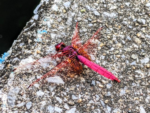 ベニトンボはすぐ近くまで接近しても逃げず、ばっちり写真に撮ることができました!