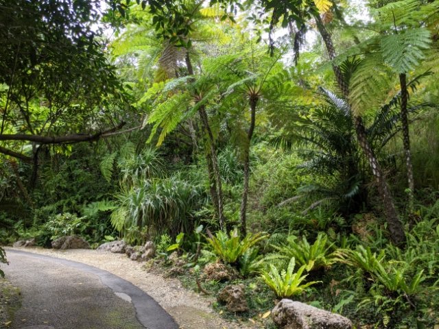 園内ではヒカゲヘゴやガジュマル、オオタニワタリなどの亜熱帯の植物がたっぷり。うちなんちゅは見慣れている植物ですが、内地から来た観光客にとっては、あふれる南国感にテンションが上がります!