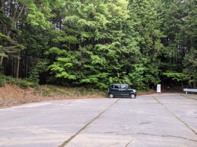 雲海展望台の目の前の駐車スペースから、行き止まりとなる一番奥の転回スペースまで車で進みます。