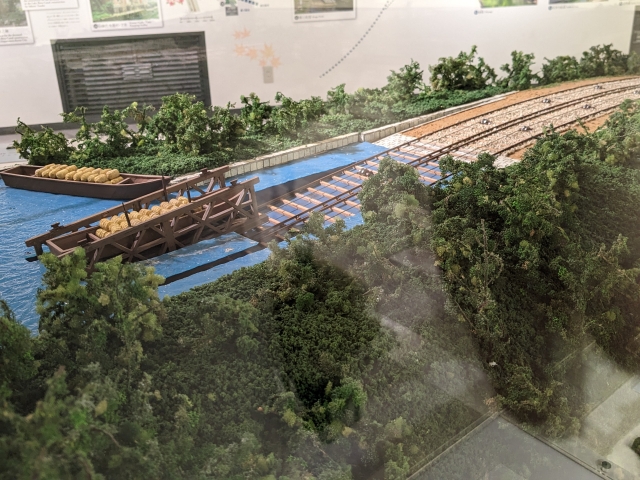 舟を一度陸に揚げ、ワイヤーロープにつながれた台車にのせます。ジオラマだととってもイメージしやすいです!