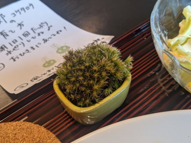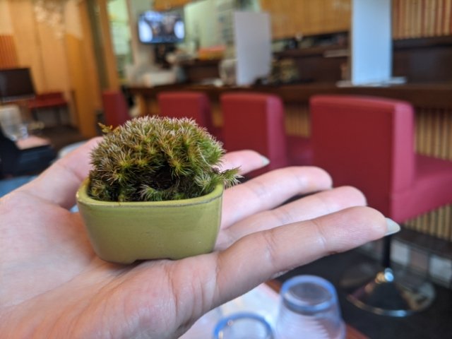 ちなみに、盆栽パンセットを頼むとリンゴくらいのサイズの苔玉がついてきます。