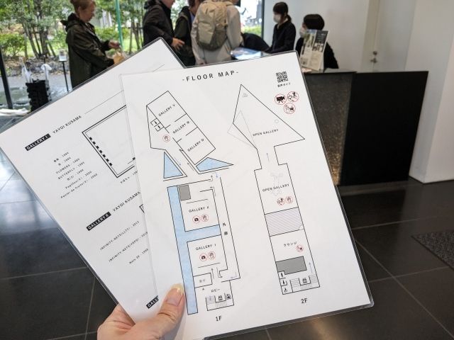 入館にあたり、こちらのラミネートされた案内を渡されます。館内のマップであり、作品リストも記載。展示には作品名が無いので、こちらを見ながら鑑賞していくカタチになります。