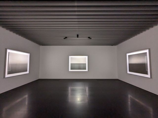 GALLERY4杉本 博司。エーゲ海、カリブ海、イオニア海など世界中の海の名を冠した《海景》が並んでいます。海と付きますが、モノトーンの世界というのがポイント。