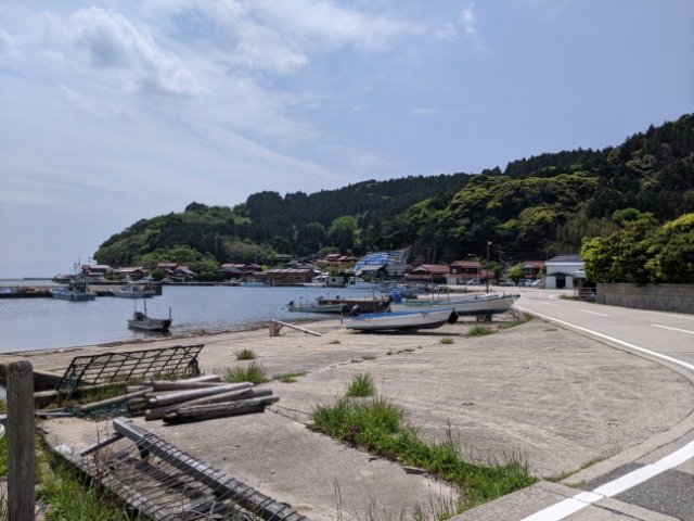 しばらく走ると漁港が見えてきました。深い入り江になっているため、波穏やかな静かな港。のんびりしたくなりますが、まだまだ序盤なので先を急ぎます。