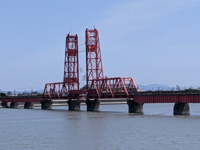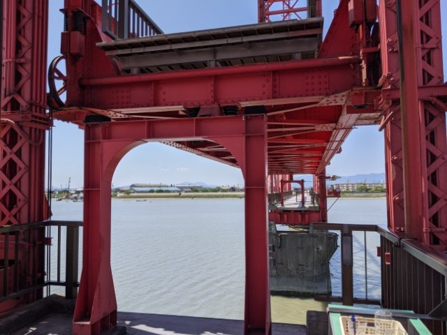 この昇開橋は、もともとは鉄道用に建設された橋。1935年の開通とともに、日本国有鉄道の佐賀線がここを通行していました。干満の差が大きい有明海の影響を受けるため、水面が一定ではない筑後川での工事は困難を極めたそうです。