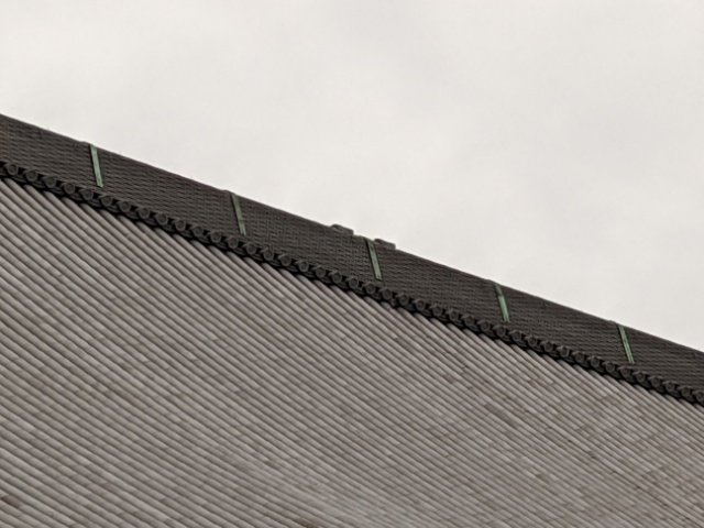 ふと屋根を見ると、不要にも思える位置に置かれた4枚の瓦を見つけました。これは「葺き残しの瓦」。完成すると衰退の一途を辿ることとなるため、わざと未完成の状態にしているのです。