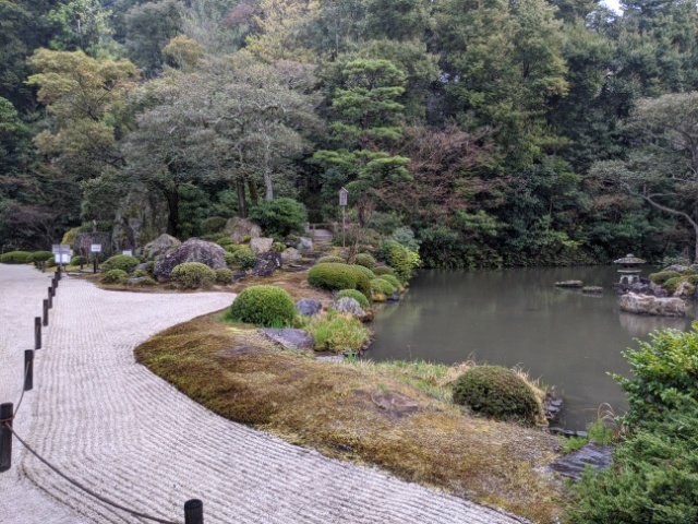 全国各地に作品を残す作庭家・小堀遠州と縁のある僧・玉淵(ぎょくえん)によって造られたという池泉庭園。玉淵についての情報があまり見つからないのですが、玉淵坊のことでしょうか。