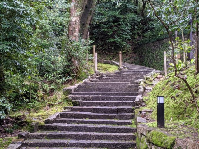 順路に沿って進むと、100段ほどの石段へ。きちんと整備されているため歩きやすいですが、高低差があるのでご注意ください。