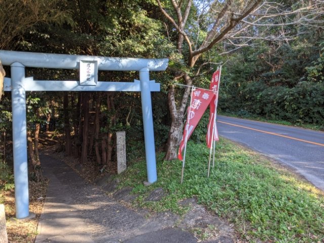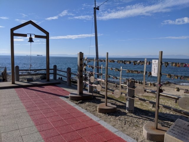 ところで、近くに神社は見当たりませんが、この鳥居はいったいどこを向いているのでしょうか?その答えは地図を見るとわかります。鳥居の前に広がる海は伊勢湾。ここを挟んだ先は三重県伊勢市・・・そう!ここは伊勢神宮の遥拝所なのです。