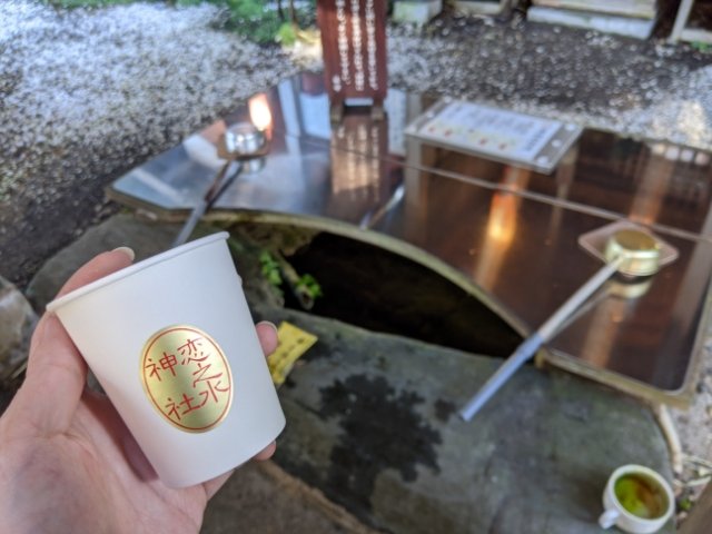 境内には湧水「恋の水」があります。古くは万病の特効薬と称され、加えて縁結びのご利益もあると言われています。
