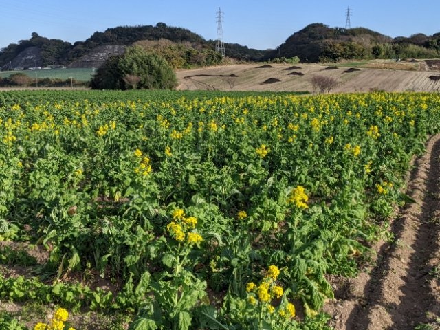 そして、なぜかナノハナも咲いています!通常なら2〜5月の春に咲く花なのに、ここでは12~3月と冬に開花します。
