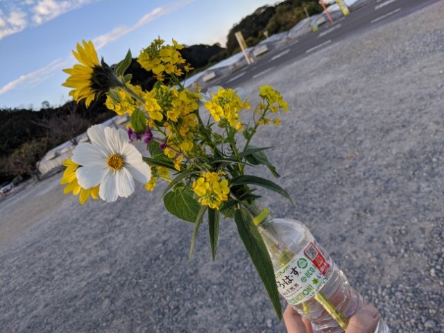 私は、ペットボトルに挿してそのまま車に載せてしまったのですが、普通は新聞紙&ビニールで包んで持って帰るみたいです。