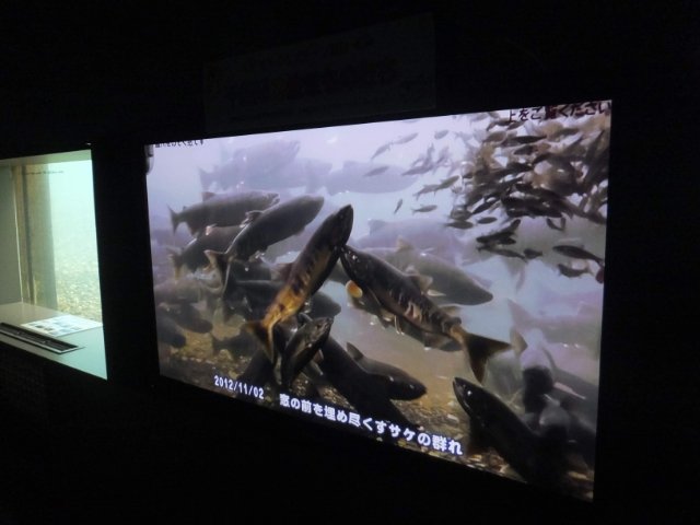 覗いてみると、そこに広がっているのは千歳川のリアルな川底。エサやりも照明もない、自然のありのままの世界です。ここにはガイドのおじさんが常駐しており、いろいろなことを教えてくれます。
