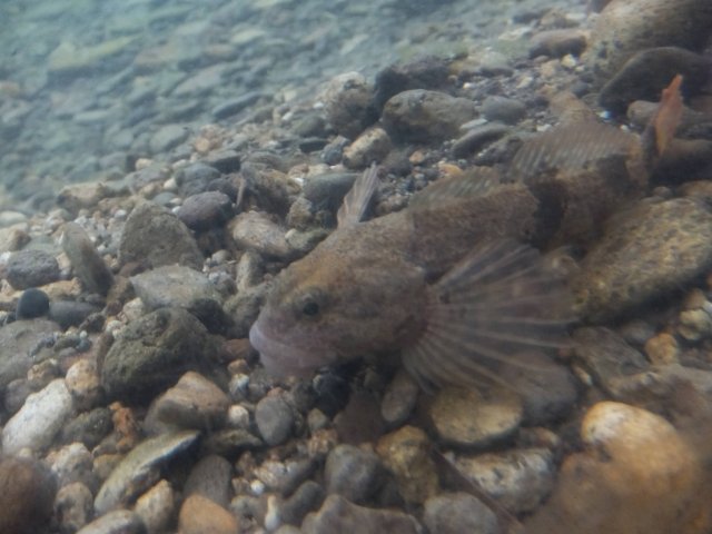 ハナカジカを眺めていると、近くに寄ってきたのはヒゲナガカワトビケラの幼虫。写真には撮れなかったのですが、黒くて3cmくらいのニュルっとした虫です。