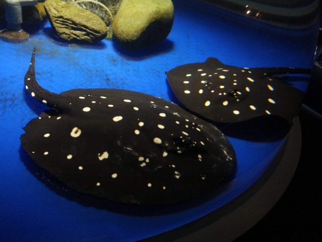 ブラジルに暮らすドット柄の淡水エイポルカドットスティングレイ。バンド名になって一気に知名度が上がりました。青い水槽とのコントラストがとってもきれい。