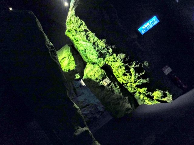 支笏湖水槽の隣には、ほぼ原寸大に再現されている苔の洞門。苔が密生しており、青の洞窟ならぬ緑の渓谷となっているスポット。ちなみに実物の苔の洞門は、土砂崩れにより立ち入り禁止となっているそう。