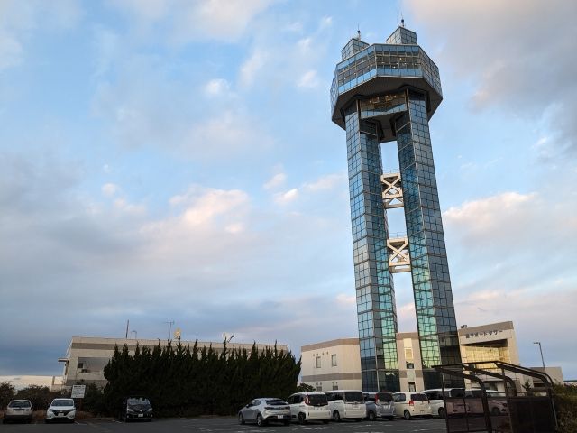展望室は2つのタワーの上に鎮座しております。その標高は46.95m、海抜だと60.45mの高さ。全国の展望タワーと比較するとそれほど高く感じませんが、辺りには高い建物が無いため見晴らしは抜群です。