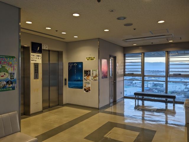 1階が売店と受付。「地球の丸く見える丘展望館」とのセット券、JAF割もあります。受付を進むとエレベーターがあり、4階の展望室まで一気に上がることができます。
