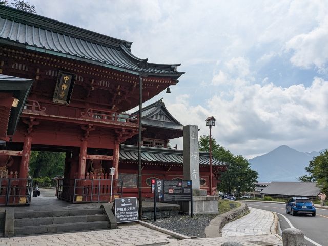 駐車場は、楼門前に数台分の無料スペースがあります。周辺の駐車場は有料なのでご注意ください。