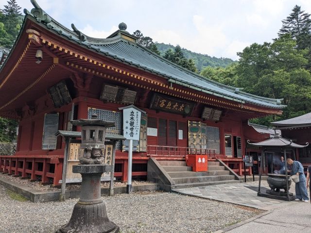 784年に勝道上人によって建立された寺院であり、もともとは男体山の麓にありました。1902年の山津波により寺院は壊滅。御本尊の立木観音は流されてしまいますが、奇跡的に中禅寺湖畔の歌ヶ浜に漂着。それに合わせて寺院は移築されました。