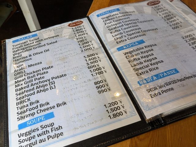 そんな中にあるのが「La maison de Cous Cous(ラ・メゾン・ド・クスクス)」。アフリカ料理の店なのにヨーロッパ風なおしゃれなネーミングと思いきや、チュニジアの公用語はアラビア語とフランス語なのです。