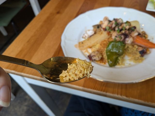 クセは少なく、日本人の口に合うお味でとっても美味しいです!最初はボリューム少なめかと思いきや、クスクスは普通のパスタやお米に比べてびっしり詰まっているので食べ応えあり。全部食べきるとおなかいっぱいになりました。