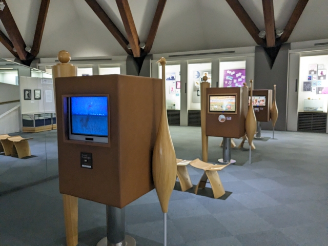 内部もとっても広々。ホール空間に様々な展示が点在しています。平日の朝イチで訪問したため、訪れている人はまだおらず、ほぼ貸切状態でした。