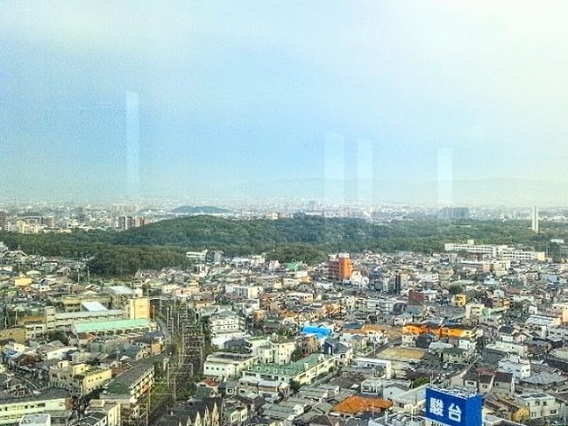 全貌は見えるため、地上から見るよりははるかに古墳らしいのですが、やはり前方後円墳たる姿で見たいです。もう少しこの市役所が古墳に近ければ・・・。もしくは、あべのハルカスがあと10kmほど南にあればばっちり見えたのに・・・。