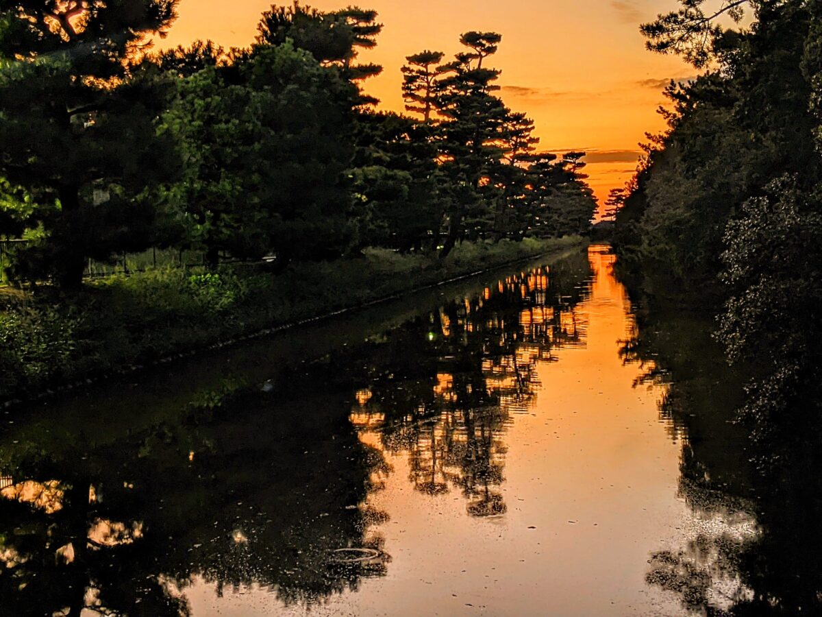 うふふ、濠に映る夕焼けがきれい(現実逃避)。