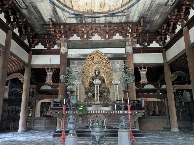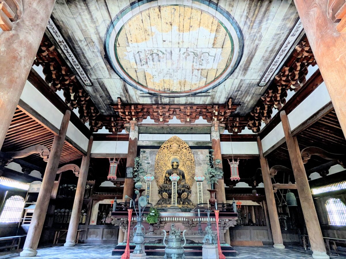 こちらは開門しており、内部を覗くことができます。祀られている本尊の釈迦如来坐像は、「京の大仏」こと方広寺の1/10サイズの模像であるそう。