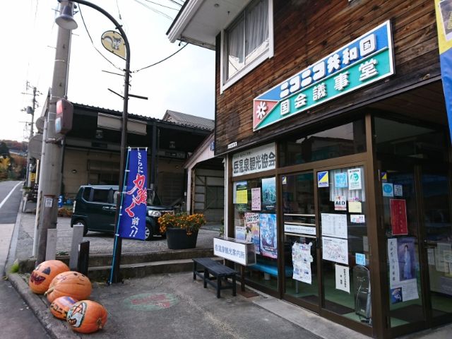 幕を閉じたニコニコ共和国ですが、岳温泉街にはまだまだ過去の遺産が残されています。温泉街中心の観光案内所では、「ニコニコ共和国 国会議事堂」の看板が目に入ります。