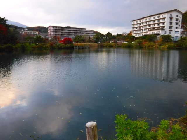 散策を続けていると、鏡ヶ池を見つけました。名前に違わぬクリアな水面で、空を映し出しています。